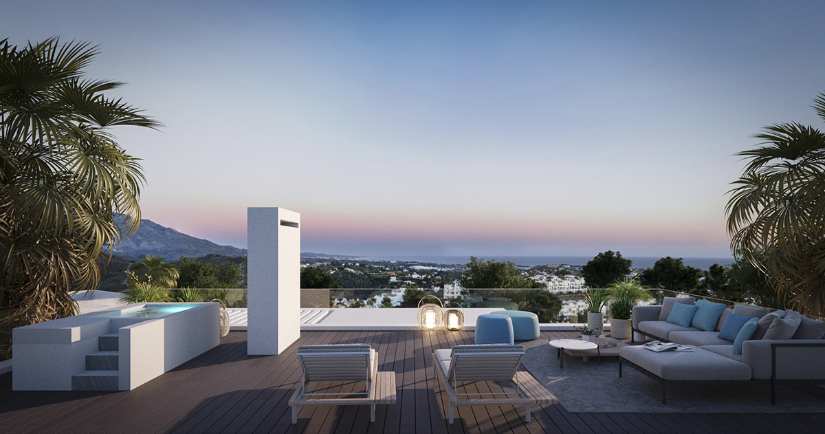 Buena Vista Hills is a secure residential complex made up exclusively of detached villas, featuring controlled entry with automated gates and surveillance cameras—ensuring privacy, tranquility, and a privileged setting surrounded by pine-covered mountains and open views of the Mediterranean Sea.